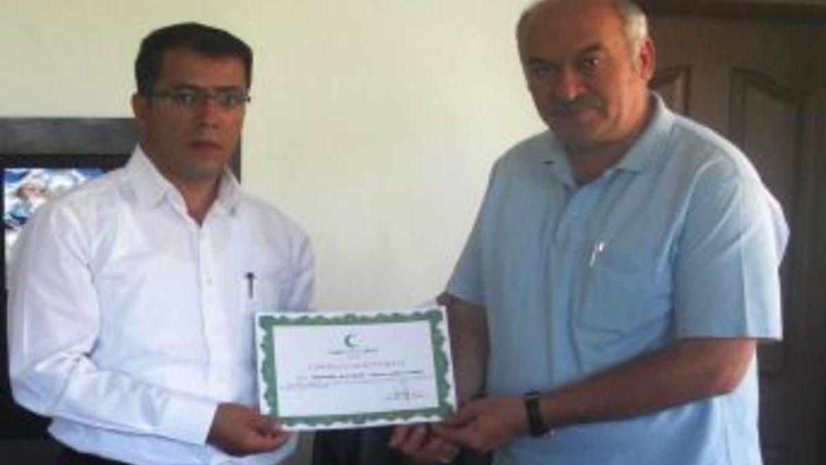 Yeşilay Genel Başkanlığı tarafından gönderilen Teşekkür Belgesini Yeşilay İl Temsilcisi Şahin Güneş takdim etti.
