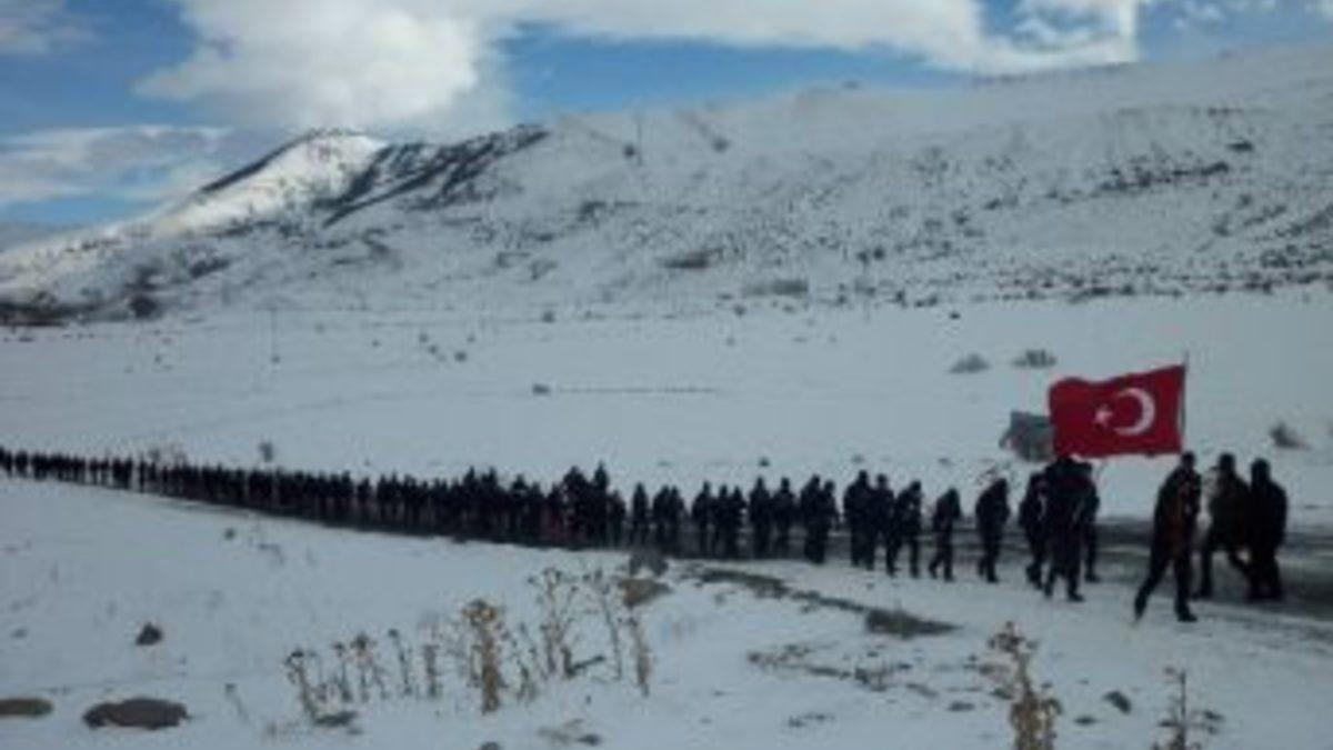 Erzurum’un Yakutiye Belediyesi üstündeki rölyef önünde temsili yürüyüş yapan izciler, daha sonra şehir turu atarak Erzurum’a 200 kilometre uzaklıktaki Enver Paşa’nın hareket merkezi olan Bardız’a gitti.