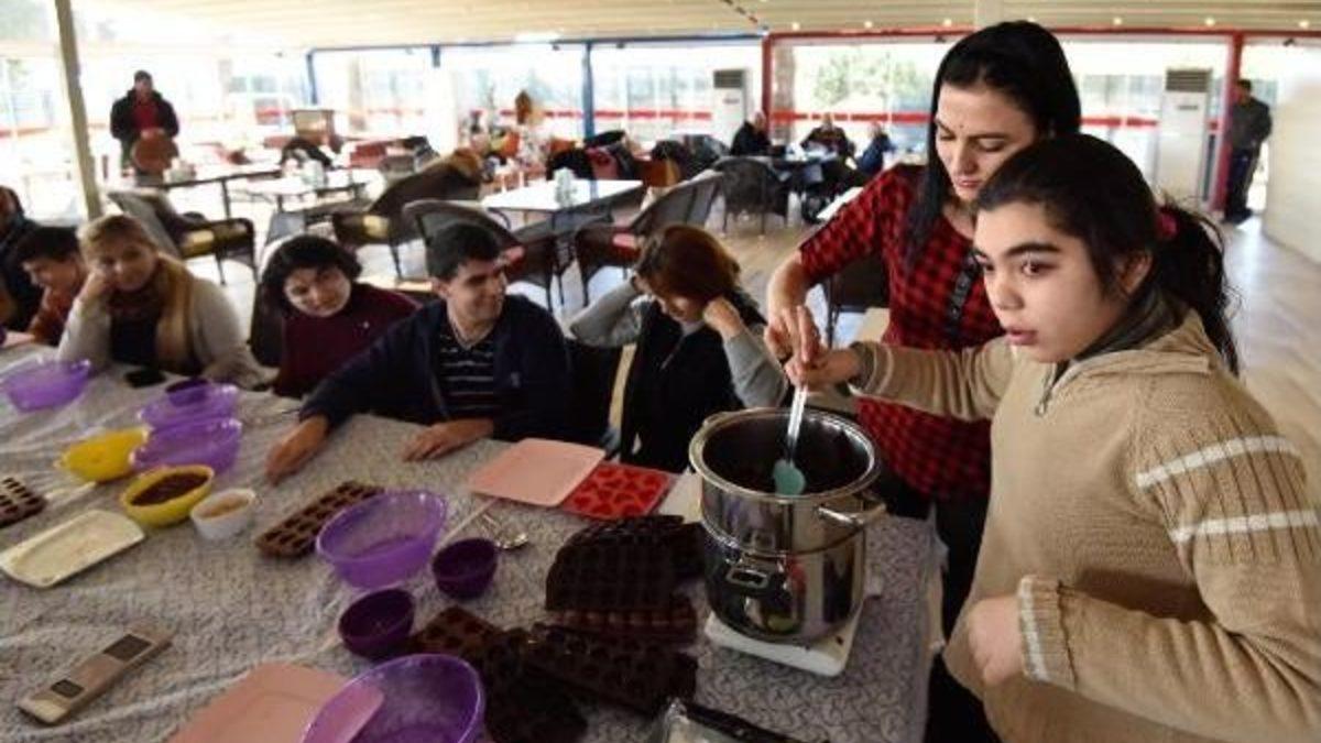 Muratpaşa Belediyesi'nin Adalya Vakfı'yla birlikte engelli bireylerin gündelik yaşam içinde kalarak sosyalleşmesini hedeflediği Engelsiz Kafe'de, özel çocuklar aileleriyle birlikte birbirinden farklı çikolatalar yaptı. Engelsiz Kafe'nin gönüllü eğitmeni Selda Kotan eşliğinde önce blok çikolata eritildi. Engelsiz Kafe'nin özel öğrencileri çikolata erirken ortaya çıkan kokuya kendilerini kaptırırken blok halindeki çikolataları eritmek birer birer tencerenin başına geldi.