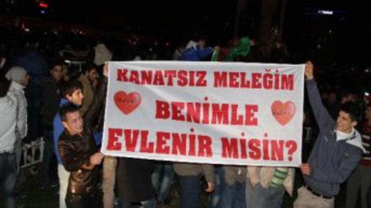 İstanbul'da yılbaşı kutlamalarına katılan bir genç, sevdiği kıza pankartla evlilik teklifi yaptı.