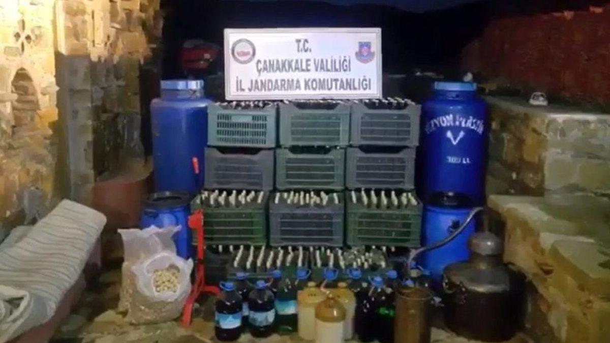 Çanakkale’de jandarma ekiplerinin düzenlediği operasyonda 8 bin 600 litre kaçak içki ele geçirildi.Edinilen bilgiye göre, bir ihbarı değerlendiren Çanakkale İl Jandarma Komutanlığı Asayiş Şube ekipleri, Çanakkale’nin Gökçeada ilçesi Eşelek köyünde 3 ayrı adrese eş zamanlı operasyon düzenledi. Yapılan operasyon neticesinde 3 bin 500 litresi şişelenmiş ve satışa hazır toplam 8 bin 600 litre kaçak yollarla üretilen şarap, 48 şişe viski, yine kaçak içki üretiminde kullanılan 1 sıkma makinesi, 3 ezme makinesi, 1 damıtma kazanı, 1 filtre makinesi, 2 tıpalama makinesi, 7 fermantasyon tankı, kültür varlığı niteliğinde 7 adet SRD rom şişesi ile 2 de av tüfeği ele geçirilirken, şüpheli V.F. ve İ.D. gözaltına alındı. Jandarma tarafından ele geçirilen içkiler incelenmek üzere TAPDK laboratuvarına gönderildi. Şüpheli şahıslara ise kaçak içki üretiminden toplam 527 bin TL idari para cezası kesildi.Öte yandan, yılbaşına sayılı günler kala satışa hazır hale getirilen kaçak içkilerin piyasaya sürüleceği öne sürüldü.