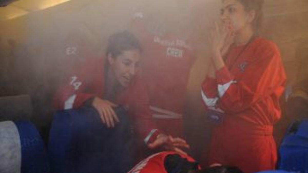 Uçuş Eğitim Merkezi’nde kabin ekiplerinin eğitimi en kötü senaryoya göre hazırlanıyor. Yangın durumunda neler yapılması gerektiği gün içerisinde defalarca tekrarlanıyor. Kursiyer kabin görevlileri bazen yolcu bazen görevli olarak gün içinde sürekli eğitime tabi tutuluyorlar. Havada en kötü senaryoya göre eğitimlerini yapan kursiyerler, uçakta yangın, basınç düşüklüğü ve panik halinde neler yapılacağına dair sürekli uygulama yapıyorlar.