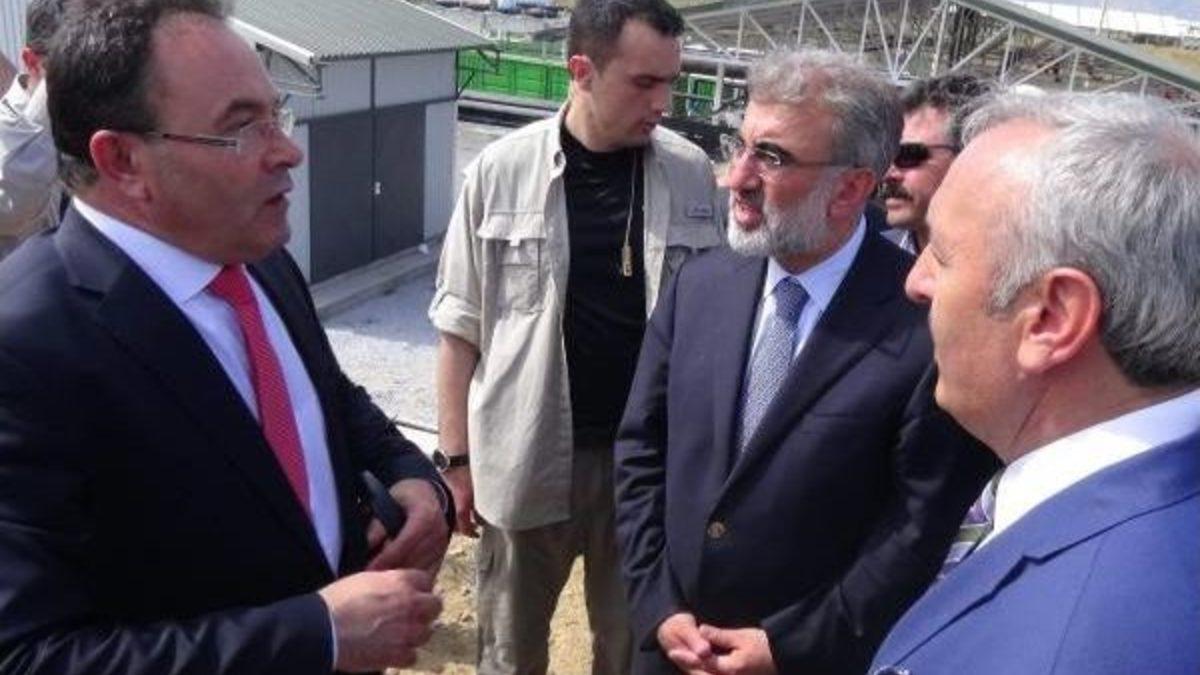 Bio-enerji santralini inşa eden Senkron firmasının Yönetim Kurulu Başkanı Bedri Yaşar ile Güriş Onursal Başkanı İdris Yamantürk, Bakan Taner Yıldız'a birer plaket verdi.