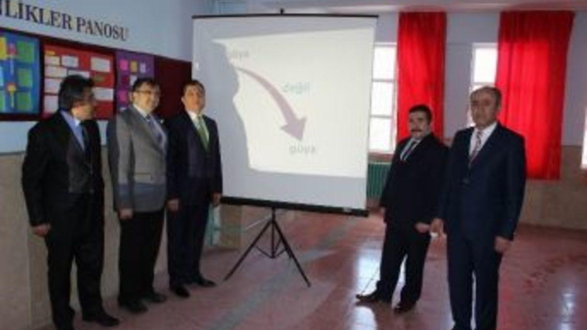 Yıldızeli Atatürk Ortaokulu’nda koridora projeksiyon cihazı ve perde konularak öğrencilerin çeşitli konularda öğrencileri bilgilendirilmesi sağlandı.Belediye Başkanı Yılmaz Navruz’un okul ziyareti sırasında konuyla ilgili bilgi veren Okul Müdürü Hacı Ahmet Şahinbay “Günlük hayatımızda sık sık kullandığımız ama farkında olmadan yanlış bildiğimiz kelimeleri, deyimleri ve atasözlerini Türkçe öğretmenlerimiz doğrularını bularak yanlış ve doğru yazımlarını karşılaştırıp öğrencilerimizin istifadesine sunduk. Burayı yaptıktan sonra sadece öğrencilerin değil bizimde birçok kelime ve atasözünü yanlış bildiğimizi gördük. Yapmış olduğumuz bilgilendirme köşesi sonucunda öğretmenlerimizin de gözlemleriyle birlikte olumlu bir geri dönüş sağlamış olduk. Yazım yanlışlarının yanı sıra belirli gün ve haftalarda çeşitli bilgilendirmeler yapıyoruz. Sivas’ımızın ve ülkemizin yetiştirmiş olduğu değerli şahsiyetleri ve önemli kişilikleri de yine buradan öğrencilerimize tanıtma imkanı buluyoruz.” dedi.Belediye Başkanı Yılmaz Navruz’da çok güzel ve pratik bir uygulama olduğunu dile uygulamayı başlattıkları için okul müdürü ve öğretmenlere teşekkür etti.
