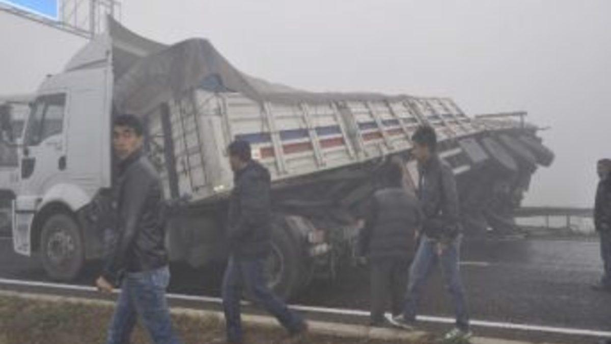 Edinilen bilgiye göre, yoğun sis nedeniyle görüş mesafesinin 10 metrenin altına düştüğü Kayseri-Nevşehir karayolunda meydana gelen zincirleme trafik kazasında 4 TIR, 3 otomobil ve bir otobüs çarpıştı. Kazada 5 kişi yaralanırken, vatandaşların ihbarı ile olay yerine çok sayıda 112 ambulansı, itfaiye ekipleri ile afet acil ekipleri sevk edildi. Küspe yüklü bir TIR’ın yan yattığı kaza nedeniyle karayolu yaklaşık 2 saat trafiğe kapandı. Kaza nedeniyle TIR’ın sürücü mahallinde sıkışan yaralıyı kurtarmak için çelik teli sürücünün sıkıştığı yere bağlayarak çekmek isteyen vatandaşlar, trafik polisinin uyarısı üzerine itfaiye ekiplerini beklemeye başladı. Kısa sürede olay yerine gelen itfaiye ve afet acil ekipleri, ilk olarak sürücünün ayağının sıkıştığı bölümü kesme makinası ile kesti. Sürücü, afet acil ekipleri tarafından sedyeye konularak sağlık ekiplerine teslim edildi.
