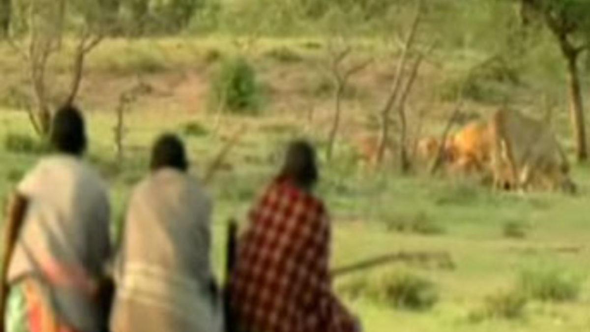 Avcılar önce aç aslanları izliyor ve ardından yavaşça yerlerinden kalkarak aslanlara doğru yaklaşıp vahşi hayvanların yakaladığı ve iştahla parçaladığı avı hiç çekinmeden onlarca aslanın önünden alıp onların gözünün önünde parçalayarak sırtına yükleyip çekip gidiyor.