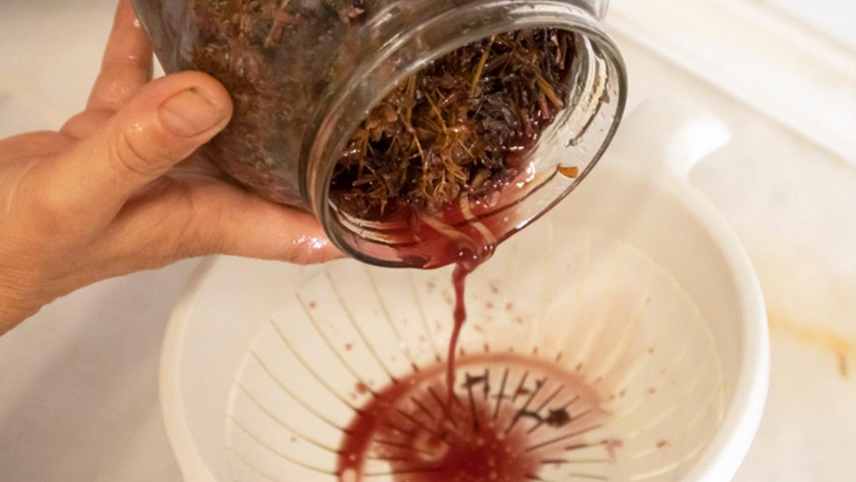 Bekleme süresi tamamlandıktan sonra karışımı tülbentten geçirerek süzün ve temiz bir cam şişeye alın.