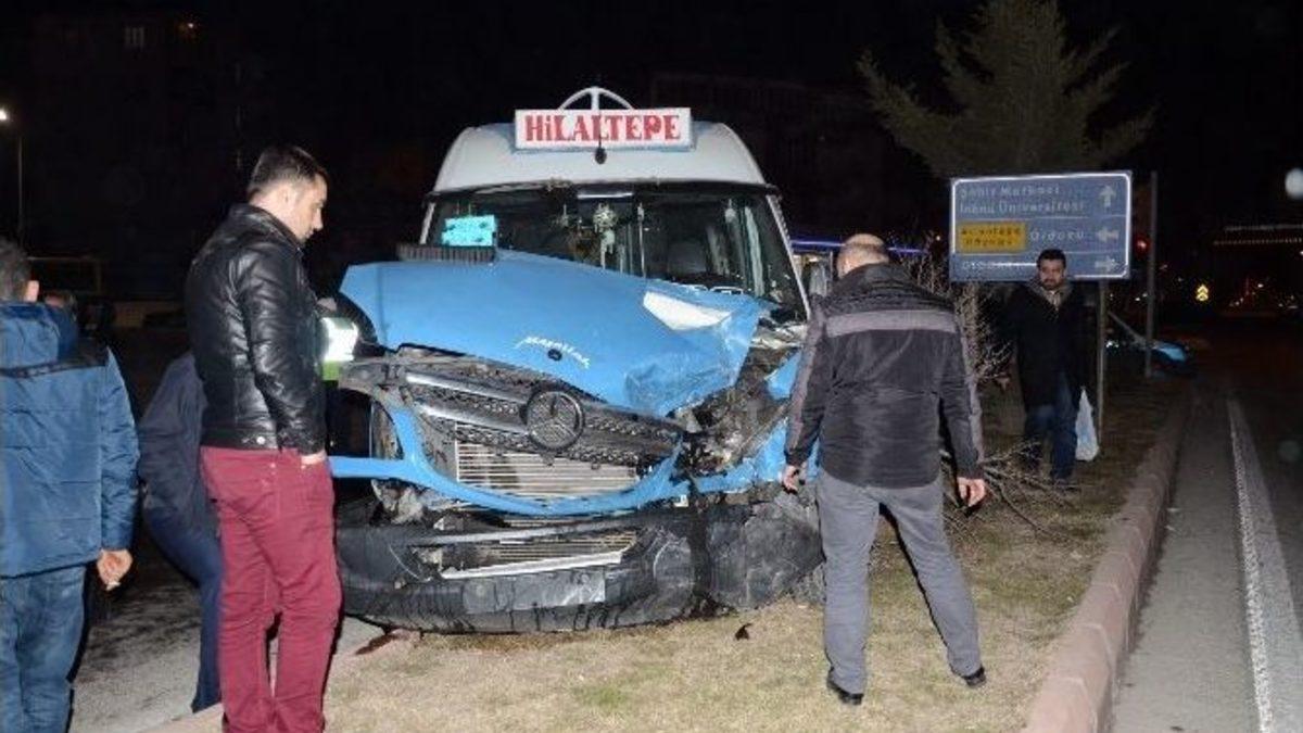Malatya’da yolcu minibüsü ile özel halk otobüsünün çarpışması sonucunda 2 kişi yaralandı.Malatya-Battalgazi yolu Çatyol Kavşağı’nda yaşanan kazada, Hilaltepe hattında çalışan 44 M 0139 plakalı minibüs ile Battalgazi-Hatunsuyu hattında çalışan 44 H 0016 plakalı özel yolcu otobüsü kafa kafaya çarpıştı. Kazada her iki araçta da maddi hasar oluşurken, minibüsün ön tarafında oturan 1 yolcu ile minibüs şoförü yaralandı.Kaza ucuz atlatılırken, trafik polislerinin olay yerinde yaptığı incelemenin ardından her iki araç da çekici yardımı ile olay yerinden kaldırıldı. Kazayla ilgili soruşturma başlatıldı.