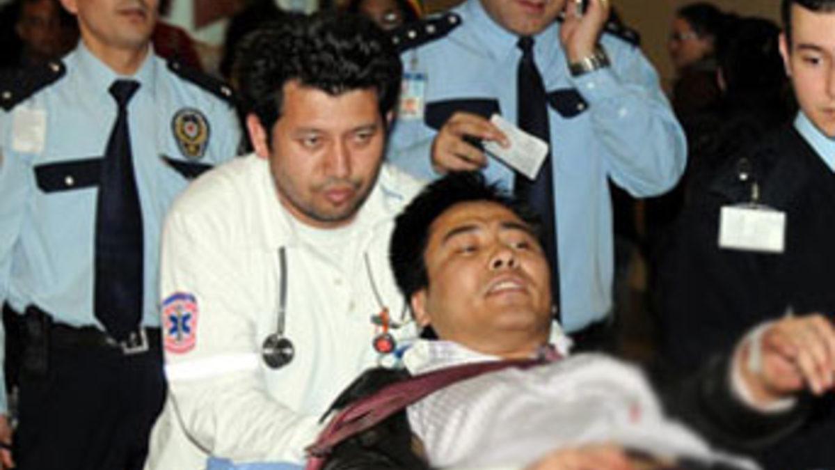 Kafede kısa bir süre oturan Çinli yolcu daha sonra kafeteryanın iç kısmına girmek istedi. Görevlilerce engellenen yolcu orada bulunan bir şişeyi aldı. Şişeyi kıran Peng Li bu sırada bileklerini kesmeye başladı.