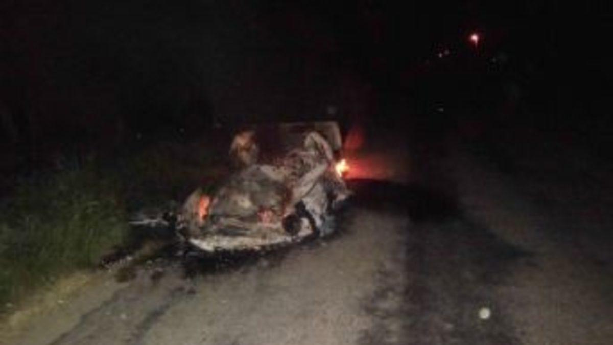 Manisa’nın Saruhanlı ilçesinde, yolda seyir halinde bulunan Anadol marka bir kamyonet, motor bölümünde çıkan yangının büyümesi sonucu tamamen yandı.