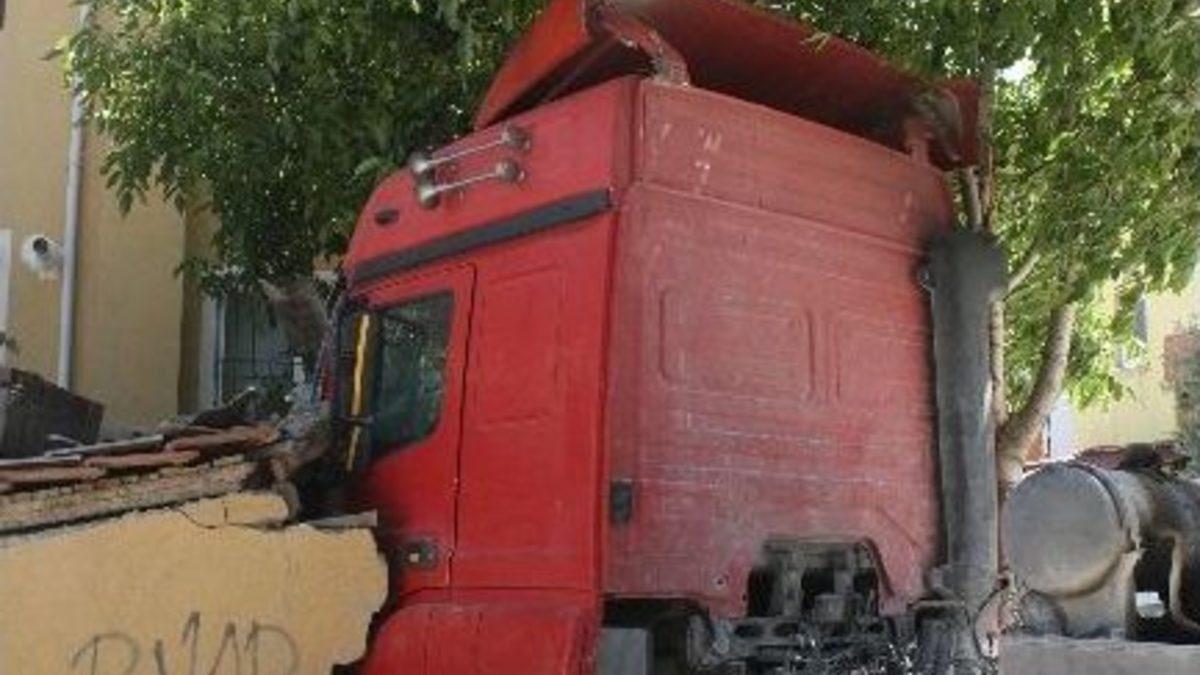 Denizli’de freni boşalan TIR, bir evin bahçesine girerken olayda kimsenin yaralanmadı.