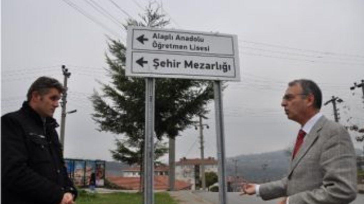 Alaplı Belediye Başkanı Dr. Nevzat Çimenoğlu, özellikle dışarıdan ilçeye misafir olarak gelenlerin okul, hastane, adliye, kaymakamlık, emniyet, postane gibi kurum binalarıyla, mezarlık ve sanayi sitesi gibi umumi hizmet alanları ve mahalleleri bulmakta güçlük çektiklerini, bu nedenle Belediye sınırları içerisindeki ana yol ayrımı ve kavşaklara yön gösterici levhalar astıklarını bildirdi. Artık, ilçeyi bilmeyen bir vatandaşın, yön levhaları sayesinde rahatlıkla aradığı kurum, kuruluş binasına ve umumi hizmet alanına ulaşabileceğini ifade eden Belediye Başkanı Dr. Nevzat Çimenoğlu, “ Bilindiği gibi, TOKİ ile Aşağıdoğancılar Köyü’ne bağlı Mollabey yolu güzergahındaki alanı Belediye sınırlarımız içine dahil ettik. Dolayısıyla, Belediye sınırlarımız biraz daha genişledi. Buna paralel olarak, Adliye Sarayı, Hükümet Konağı ve yeni açılan okul binalarıyla kurumsal binalar da daha geniş bir alana yayıldı. Eskiden, neredeyse tüm kurumlar, Belediye binamızın çatısı altında faaliyet gösteriyordu. Kurumsal hizmet alanının genişlemesiyle, yön levhaları da kaçınılmaz oldu. Bu nedenle, tüm ana yol ayrımları ve kavşaklara yön gösterici levhalar astık. Bundan böyle dışarıdan gelen bir vatandaş aradığı yere rahatlıkla ulaşabilecek. “ dedi.