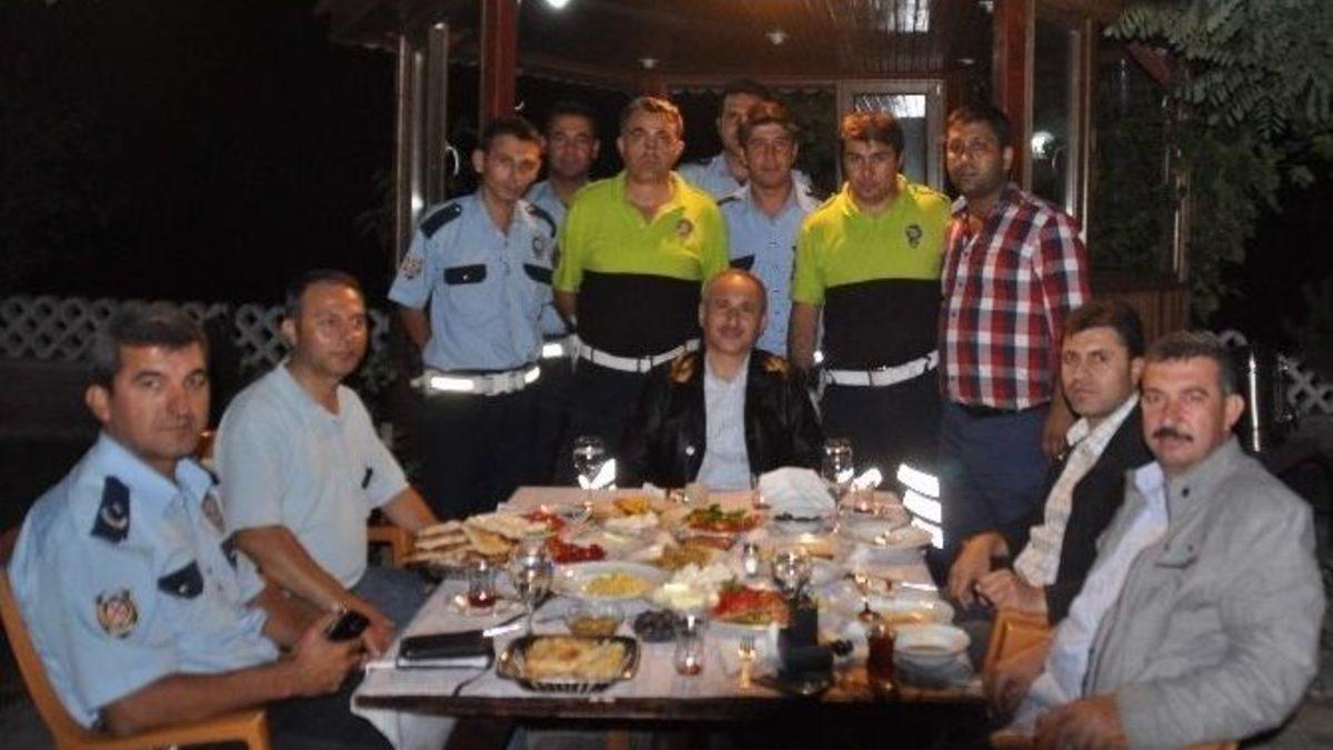 Ramazan Bayramı tatilinin başlamasıyla Yozgat E-88 Karayolunda emniyet tedbirlerini artıran Yozgat Emniyet Müdürü Saim Akpınar, sahur vaktinde uygulama noktasında görev yapan polisleri ziyaret edip birlikte sahur yemeği yedi.Yozgat - Ankara karayolu üzerinde Yerköy Bölge Trafik Denetim İstasyonu önünde denetim yapan polis ekiplerini ziyaret eden Yozgat Emniyet Müdürü Saim Akpınar, İl Emniyet Müdürlüğü Bölge Trafik Denetleme Şube Müdürü Süleyman Tuğrul’dan çalışamalar hakkında bilgi aldı. Bayram tatili dolayısıyla trafik tedbirlerini en üst seviyeye çıkardıklarını belirten Akpınar, "Yozgat konumu itibariyle doğu ve batı illerinin kesiştiği noktada yer alması böyle uzun süreli tatillerde karayolunda yoğun araç trafiğinin yaşanmasına sebep oluyor. Dolayısıyla bizlerde sürücülerimizin daha dikkatli seyahat etmelerini sağlamak amacıyla belirli bölgelerde trafik uygulamalarını artırdık” dedi.Polisin 7-24 saat görevi başında olduğunu vurgulayan Emniyet Müdürü Akpınar, “Şuan Yerköy ilçemizdeki personelimizin çalışmalarını yerinde görmek ve onlara moral verme adına ziyaret ettik. Ziyaretimizin sahura denk gelmesi nedeniyle arkadaşlarımızla birlikte sahurumuzu da yaptık. Ramazan ayı içerisinde yaptığı en güzel sahurdan birisini personelimizle birlikte yaptık. Ayrıca bölge trafik istasyonlarımızda sürücülere de sahur ve iftar saatlerinde ikramlarımız yapılmaktadır. Amacımız can ve mal kaybı olmadan, vatandaşlarımızın gidecekleri yere ulaşmasını temin etmektir” diye konuştu.Sürücülere trafik kurallarına uymaları konusunda uyarılarda bulunan Akpınar, ”Sürücülerimizden isteğimiz gidecekleri yerlere aşırı sürat yapmadan, dikkatli olarak sağlıklı bir şekilde gitmelerini istiyoruz. En fazla 5 dakika oynayacak zaman için aşırı sürat yüzünden kendi ve başkalarının hayatını tehlikeye atmasınlar. Trafik kurallarına harfiyen uyalım. Bayramlarımızı kazasız belasız bayram gibi yaşayalım" ifadelerini kullandı.