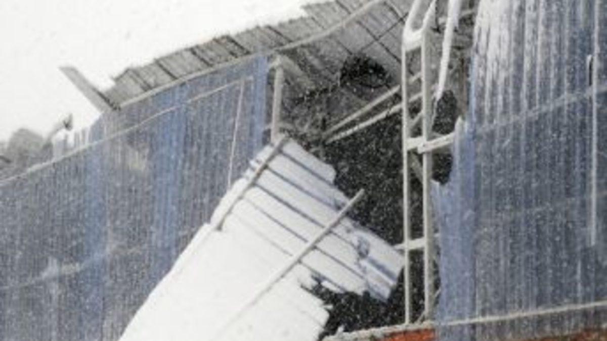 Hakkari’nin Yüksekova ilçesinde yoğun kar yağışı nedeniyle bir halı saha çökerken, bir evin çatısından inen karların altında kalan bir kişi de son anda kurtarıldı.