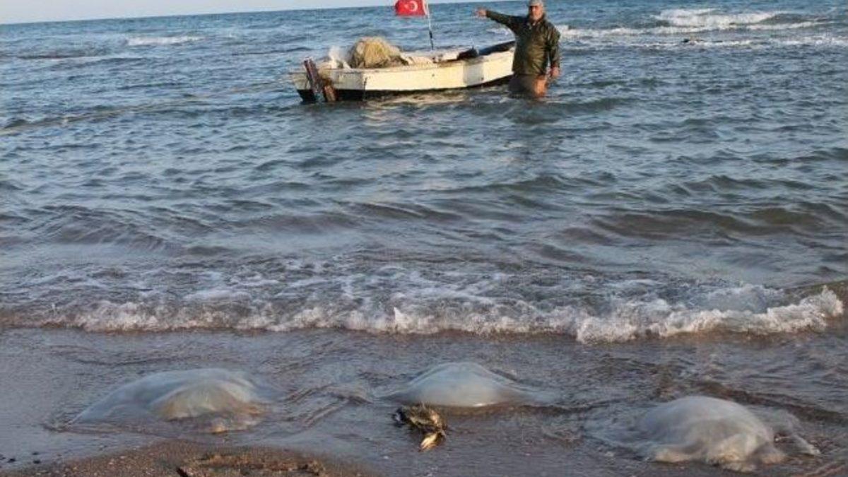 Adana'nın Yumurtalık ilçesinde sahile yüzlerce denizanası vurdu.Küçük Yumurtalık Mahallesi'nde geçimini balıkçılıkla sağlayan Erdoğan Öztoprak, sahilde 1 metrede bir denizanası ölüsüne rastlamanın mümkün olduğunu belirterek, "Denize açılsanız çok daha fazlasını görürsünüz. Bu canlılar yüzünden balık ağlarımız parçalandı ve parçaladığı yetmiyormuş gibi balıklarımızı da yiyorlar. Salyasının değdiği yer su toplamış gibi kabarıyor. Eldiven kullanmamıza rağmen her tarafımız yara bere oluyor. Her ava çıkmamıza 3-5 tane balıkla döner olduk. Bu deniz canlılarının ortaya çıkması ağustos ayıdır. Ağustos ayında bile çok nadir görülür, neden bu mevsimde ve bu kadar çok karaya vurduğunu anlayamadık" dedi.Balıkçılar, karaya vuran büyük denizanalarının 50-60 santim çapında olduğu bölgede ilk defa böyle büyük denizanası gördüklerini kaydetti.Çukurova Üniversitesi Su Ürünleri Fakültesi öğretim görevlileri ise ilçede son günlerde rüzgarlı havanın hakim olmasının deniz hareketlerini arttırdığını ve suyun ani soğuyup ısınmasından dolayı denizanası ölümlerinin görüldüğünü bildirdi.