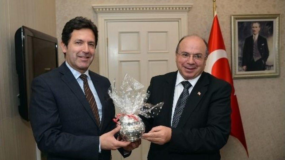 Yunanistan İzmir Başkonsolosu Theodore Tsakiris, Muğla Valisi Amir Çiçek’i makamında ziyaret etti. Bir dizi ziyarette bulunmak üzere Muğla’ya gelen Yunanistan İzmir Başkonsolosu Theodore Tsakiris, ikili sosyal, ekonomik ve kültürel konularda görüş alışverişinde bulundu. Ziyarette D-Marin Yönetim Kurulu Üyesi Ali Erkan Bezirgan da yer aldı.