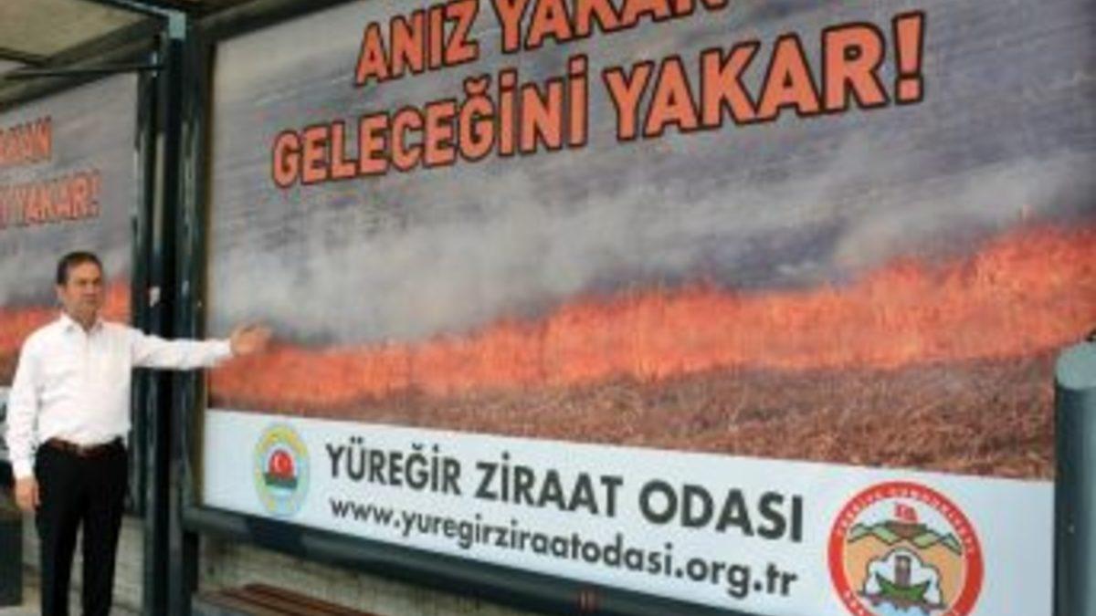 Hububat hasadının devam ettiği Adana’da, üreticilere Yüreğir Ziraat Odası’ndan anız uyarısı geldi. Adana Valiliğinin desteğiyle şehrin dört bir yanına asılan ilanlarla üreticilere “Anız yakan geleceğini yakar” mesajı verildi.Yüreğir Ziraat Odası Başkanı Mehmet Akın Doğan, hasat sonrası anız yakma alışkanlığının, hububat ekiminin yapıldığı tüm bölgelerde ciddi bir problem haline geldiğini belirtti. Doğaya zarar veren, üzücü olayların yaşanmasına neden olan anız yangınlarını önlemek ve bu konuda farkındalık oluşturmak amacıyla Valiliğin de desteğiyle araç ve yaya trafiğinin yoğun olduğu cadde ve bulvarlarda otobüs duraklarına ilanlar astıklarını ifade eden Doğan, çiftçilerden, uyarıyı mutlaka dikkate almalarını istedi.Anız yangını ile toprak fakirleşiyor, verim düşüyorHasat sonrası tarlada kalan hububat sapının yakılarak temizlenmesinin çevreye, toprağa, ormanlara, su varlığına, biyolojik çeşitliliğe ve ülke ekonomisine zarar verdiğine dikkat çeken Doğan, anızın yakılması sırasında toprakta yaşayan, onu besleyen, havalandıran, verimli kılan milyonlarca canlı mikroorganizmanın yok olduğunu, toprağı besleyecek organik atıkların ortadan kalktığını, toprağın fakirleştiğini ve verimin düştüğünü söyledi.Bütün bunların yanı sıra anız yangınlarının, yakındaki diğer tarla ve bahçeler ile ormanlara da sıçrayıp üzücü olayların yaşanmasına neden olabildiğinin altını çizen Yüreğir Ziraat Odası Başkanı Mehmet Akın Doğan, “Tarladaki anız kesinlikle yakılarak temizlenmemeli. Bu yöntem yasa dışı olduğu gibi, başta toprak olmak üzere doğal varlıklara zarar veriyor. Anızı tarladan temizlemek için mümkün olduğunca toprağa yakın hasat yapılmalı, toprak işleme aleti ve gerekirse hasat sonrasında sap parçalayıcı kullanılmalı” dedi.Anız gübreye dönüştürülmeliAnız gübreye dönüştürülerek tekrar toprağa verildiğinde, toprağın organik madde açısından da zenginleştiğini vurgulayan Doğan, “Toprağı verimli kılan mikroorganizmalara besin sağlanır, toprağın neminin korunmasına katkı sağlanır, toprağın verimi artar, çiftçi daha fazla ürün alır ve ürünün tadı, kokusu daha güzel olur. Bu sebeple çiftçilerimizi, ‘Anız yakan geleceğini yakar’ diyerek bir kez daha uyarıyoruz” şeklinde konuştu.