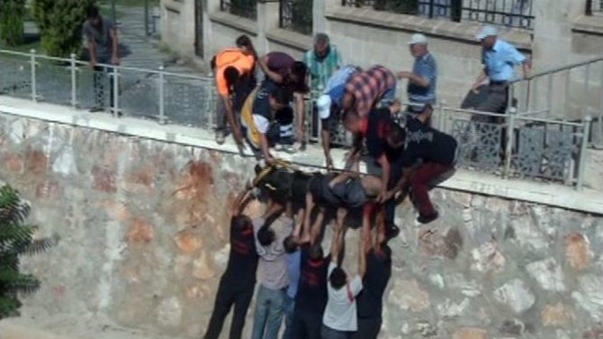 Aksaray’da yürürken dengesini kaybedip Uluırmak’a düşerek yaralanan bir kişi, itfaiye ve 112 Acil Yardım ekipleri tarafından kanaldan çıkartıldı.Olay, Meydan Mahallesi’nde bulunan Ulu Irmak Köprüsü’nde meydana geldi. Edinilen bilgiye göre, köprüden geçmek isteyen ismi belirlenemeyen bir vatandaş, köprünün yanından geçerken dengesini kaybederek boş olan Uluırmak kanalına düştü. Kanala düşerek yaralanan şahsı, gören vatandaşlar durumu itfaiyeye ve sağlık ekiplerine bildirdi. Olay yerine gelen itfaiye ve 112 Acil Yardım ekipleri yaralıya ilk müdahaleyi kanal içerisinde yaptı. Ardından sedyeye bağlanan yaralı itfaiye ve 112 Acil Yardım ekiplerinin yardımı ile birlikte yaklaşık 3,5 metrelik kanaldan çıkartıldı. Ambulansa taşınan yaralı Aksaray Devlet Hastanesi’ne kaldırılarak burada tedavi altına alındı. Yaralının durumunun iyi olduğu öğrenildi.