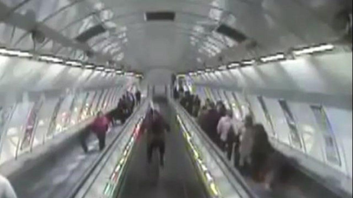 Yaklaşık 30 derecelik açıyla 51 metre uzunluğunda, hareket halindeki yürüyen merdivenden bisikletiyle inen adam amacına ulaştı. Ancak son basamağı da geçen adam, bisikletin dengesini kaybederek şiddetli şekilde düştü.