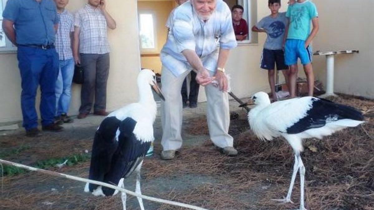 Caminin üzerindeki sac kaplama nedeniyle yavruların kayarak düştüğünü dile getiren Köseoğlu, "Yavru yuvada durmayarak düşünce beslemeye başladık. 15 gün sonra diğer yavru da yere düştü. Son günlerde annesi de gelmez oldu. Büyüyen leylekler, uçabilecek duruma geldikleri zaman doğal yaşamlarına bırakacağız" dedi.