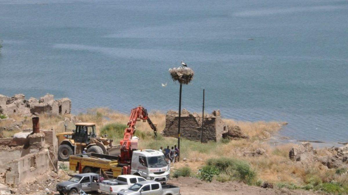 Tunceli’de geçtiğimiz hafta baraj kapaklarının kapatılması sonucu su seviyesi yükselen Tatar Baraj sahasında yuvaları bulunan leylekler için yetkililer harekete geçti. Leyleklerin yuvasının olduğu direğin etrafı sağlamlaştırıldı.