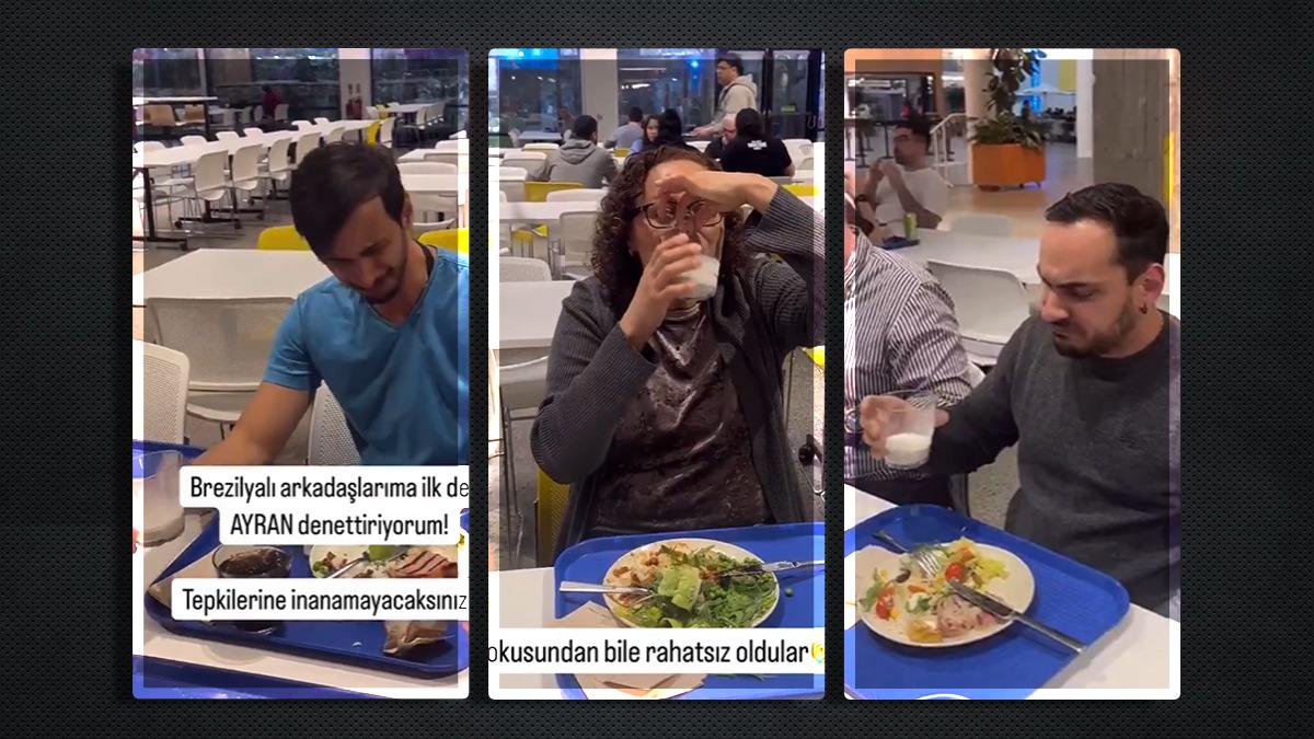 Sosyal medyada paylaşılan bir videoda kültürel lezzet anlayışının farklılıkları şaşkına çevirdi. Bir kadın, Brezilyalı arkadaşlarına restoranda ayran içirdi. O anları kayda alan genç kadın yabancı uyruklu arkadaşlarının tadım yaparkenki tepkilerini kaydetti.