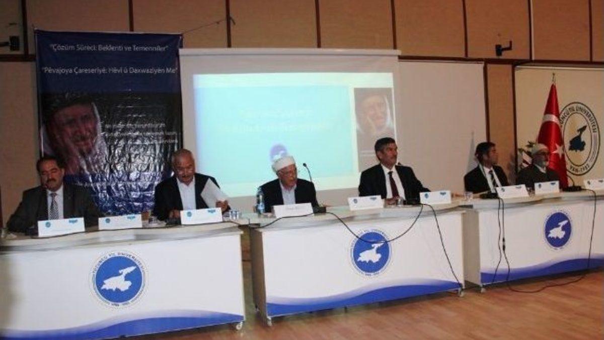Van Yüzüncü Yıl Üniversitesi (YYÜ) tarafından düzenlenen "Çözüm Süreci: Beklenti ve Temenniler" çalıştayı başladı.YYÜ Cengiz Andiç Kültür Merkezi’nde yapılan çalıştaya Van Valisi Aydın Nezih Doğan, YYÜ Rektörü Prof. Dr. Peyami Battal, Van Büyükşehir Belediyesi Eş Başkanı Hatice Çoban, Tuşba Belediye Başkanı Doç. Dr. Fevzi Özgökçe, Van Ticaret ve Sanayi Odası Yönetim Kurulu Başkanı Necdet Takva ile 6 ilden 147 kanaat önderinin katılımıyla başladı. YYÜ Rektörü Prof. Dr. Peyami Battal, bölgemizle ilgili yazılmış fikirlerin yüzde 90'ının bölgeyi yansıtmadığını belirterek, “Bunları beyan eden arkadaşların büyük bir kısmı bölgeyi, bölge insanını tanımıyor. Bunları bilmeden yazmaya çalışıyorlar. Bizimle ve bölgemizle ilgili yazılanların önemli kısmı bölgeyi yansıtmıyor. Bölgede yaşayan bizler 'oturalım sorunlarımızı konuşalım' dedik. Bu önemli meseleyi kendi içimizde, birbirimize tahammül ederek konuşmamız gerektiğine inanıyorum. Burada konuşulacak her şey kitap haline getirilecek ve ilgili tüm kurumlara gönderilecek" dedi.İki gün sürecek olan çalıştayda konuşan Van Valisi Aydın Nezih Doğan ise, Yunus Emre’den bir örnek vererek, eğer ortada sorun varsa kendiliğinden çözülmeyeceğini, bunun için iradeye ihtiyaç olduğunu söyledi. Vali Doğan, “İnsanlarla ilgili hoş şeyler söylerseniz aranızdaki şeyler gelişir. Önce dilimize sahip çıkmalıyız. Sözlerin hedefine doğru ulaşması için ortak nokta belirlemek zorundayız. Eğer konuşmalarımızda, hallerimizde süreci temelden etkileyecek yanlışlıkları yaparsak bilmeliyiz ki zaten zor olan süreci, yeni zorluklarla karşı karşıya getiririz. Eğer ortada sorun varsa kendiliğinden çözülmez. Bunun için iradeye ihtiyaç vardır. Buradan ortaya konan iradenin mimarına çok teşekkür ediyorum. Başbakanımız önemli bir siyasi risk almıştır. Gereken adımları atmakta ve atmaya devam etmektedir. Birlikte Türkiye'yi inşa etmeye çalışmaktayız. Ortak bir din ve tarihdaşlığın sonucu olarak ortak bir kültürümüz var. Sabra ve akla ihtiyacımız var, ama duaya da ihtiyacımız var. Burada bulunan kanaat önderi ve din alimlerimizin dualarını bekliyoruz" şeklinde konuştu.Van Büyükşehir Belediyesi Eş Başkanı Hatice Çoban da, Kürt sorununun Türkiye'nin, Ortadoğu'nun ve dünyanın en temel sorunlarının başında geldiğini belirtti. Çoban, "Bu sorun tüm insanların hayatında iz bırakmıştır. Gerçek bir demokratikleşmeden söz edemiyorsak, yine bundan kaynaklıdır. 30 yıldır her noktaya gençlerin cenazeleri gitti. Hakkâri’den Edirne'ye kadar her evde bir acı var. Bunun oluşturduğu tahribat derin bir boyuta ulaştı. Sadece canlarımızı değil; düşünme, tartışma hassasiyetimizi kaybettik. Çocuklarımız bu savaşın oluşturduğu tahribatla büyüdü ve yaralar kapanmayacak noktaya ulaştı. 50 bine yakın can, köy yakmalar, işkenceler bu acının sonucudur. Başlangıcı Oslo'ya dayanan süreçte, eksikleriyle bugüne gelindi. Bu süreç Türkiye'nin yaşadığı en normal ve rahat süreç oldu. Sizlerin huzurunda bunu oluşturan, karar veren ve anlamlandıran herkese teşekkür ediyorum. Çatışmanın olmaması önemlidir. Ama eski günlere dönmemek için acilen yapılması gerekenler var. Eksiklikler olur, ancak buradan bakınca süreçte iyiye gitmeyen bazı durumlarda yok değil. Böylesi ortamlar bazı şeylerin üstünün örtüleceği durumlar değildir. İnsanlar ölmüyor, süreç devam ediyor, ama böyle devam edeceğinin garantisi de yok. Bu ortamın devam etmesi için üzülerek belirtmeliyim ki sağlam zemin yoktur. Zeminin oluşabilmesinin en temel noktası, yasal zeminlerin oluşturulmasıdır. Türkler, Kürtler ve tüm halklar süreci çok iyi sahiplendi. İlk kez halklar birlikte süreci tartıştı. Bu halklar açısından empatiyi de anlamlı hale getirdi" diye konuştu.Çalıştay, daha sonra üç ayrı salonda yapılan panellerle basına kapalı olarak devam etti.
