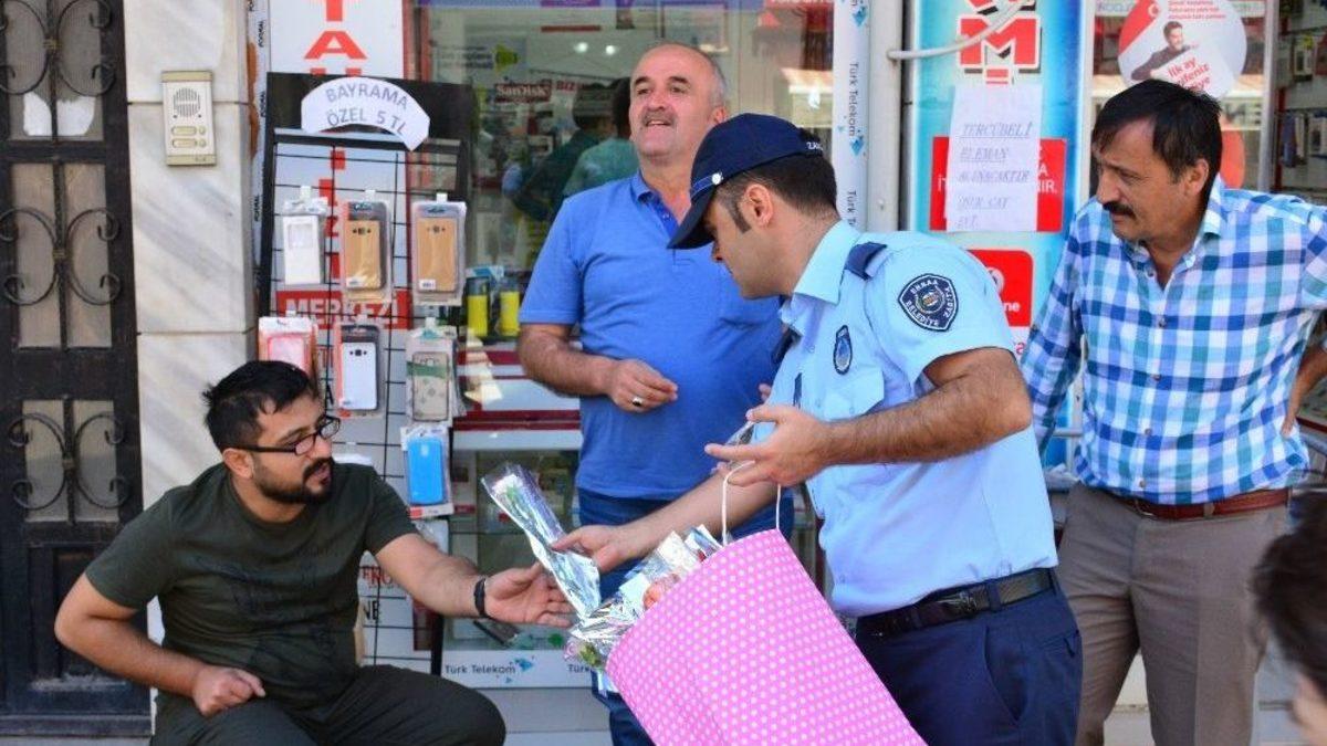 Tokat’n Erbaa ilçesinde Zabıta Haftası dolayısıyla zabıta ekipleri engellilere zabıta üniforması giydirip, birlikte uygulama yaptı.Zabıta teşkilatının 191’inci kuruluş yıl dönümü dolayısıyla Erbaa Belediyesi Zabıta Müdürlüğü ekipleri ilçe esnafına karanfil hediye etti. Zabıta ekipleri daha sonra Tüm Engelliler Kültür ve Dayanışma Derneği (TEKDEN) üyesi engellilere zabıta üniforması giydirerek uygulama yaptı. TEKDEN üyesi engelliler engelli rampalarının önüne ve sarı şeritler üzerine araç park eden, eşya koyan sürücü ve esnafları uyararak daha duyarlı davranmalarını istedi.Engellileri de uygulamaya dahil ederek farkındalık oluşturmak istediklerini ifade eden Erbaa Belediyesi Zabıta Müdürü Nurhan Şahin,"İlçemizde engelli hemşerilerimizle birlikte uygulama gerçekleştirdik. Onların geçişini engelleyen hatalı parklar veya sarı şeritler üzerine eşya koyan esnaflarla ilgili bilgilendirme ve uyarılarımızı yapıp vatandaşlarımızdan daha duyarlı davranmalarını istedik. Esnafımıza ve vatandaşımıza karanfil hediye ettik. Ceza yazan değil, hizmet alan ile hizmet veren arasındaki köprü olmaya çalışıyoruz" dedi.