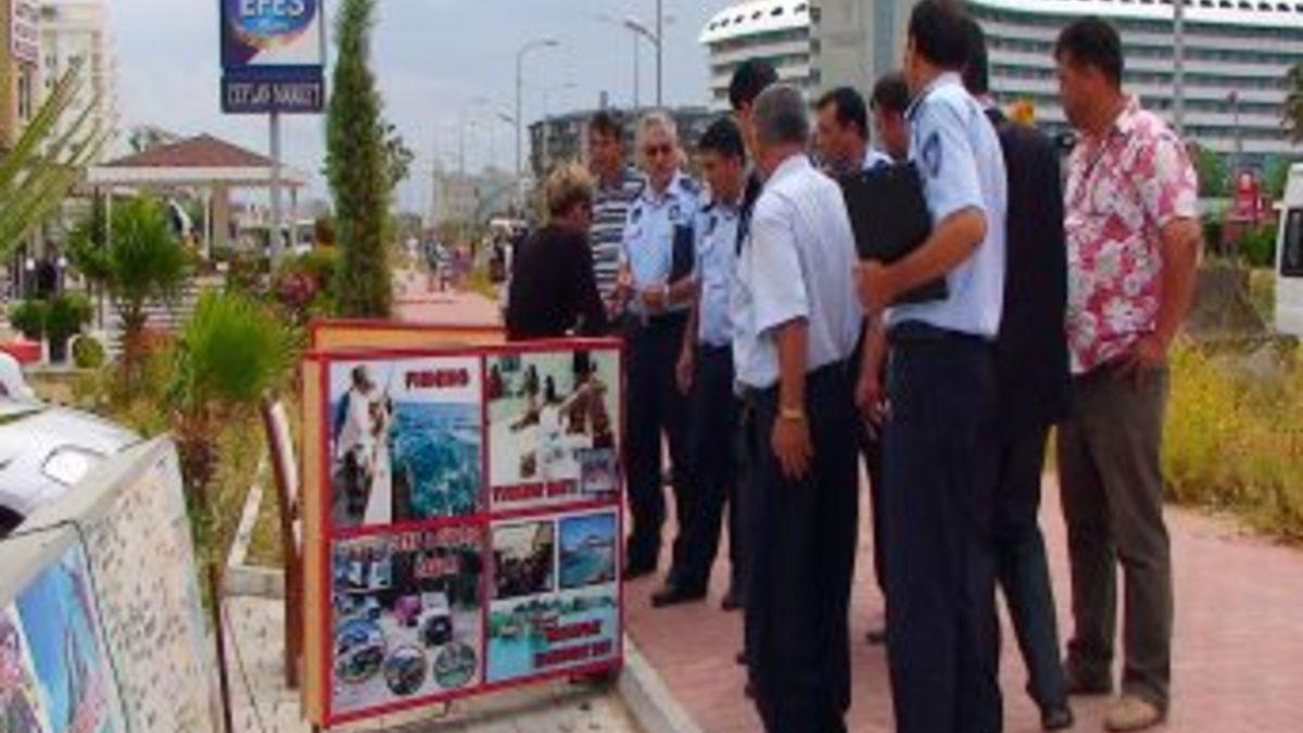 Turizme zarar verecek her türlü çalışmanın belediye olarak karşısında olacaklarını belirten Aksu Belediye Başkan Yardımcısı Hasan Çetin, "Kaldırımlar halkın kullanım alanlarıdır. Esnafın veya seyyar satıcıların tezgahlarını açacakları alanlar değildir. Kaldırım işgaline neden olan tabelalar ve görüntü kirliliğine neden olan bez afişlere de kesinlikle müsaade edilmeyecektir" dedi.