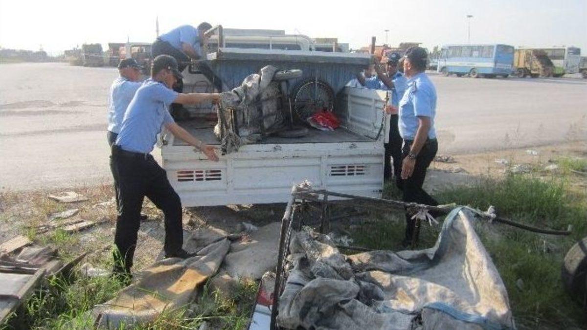 Mersin’in Tarsus ilçesinde zabıta ekipleri, sokak aralarında seyyar satıcılara yönelik çalışma yaptı.Zabıta Müdürlüğüne bağlı ekipler, ana yol, meydan, cadde ve bulvarlarda çevreyi kirleten, geliş geçişi engelleyen seyyar arabalara müdahale etti.Şehir merkezinde özellikle çevreyi rahatsız eden seyyar satıcılara karşı mücadele başlatan ekipler, vatandaşlardan gelen şikayetleri değerlendirdi.Kurallara uymayan seyyar satıcıların araçlarına ve terazilerine el koyan Zabıta Müdürlüğü ekipleri, yaptıkları çalışmalar sonucunda kentte gürültü ve görüntü kirliliğini ortadan kaldırıyor.ÇÖP EV BOŞALTILDIBu arada, zabıta ekipleri, kendilerine gelen şikayeti değerlendirerek çöp yığınına dönen evi boşalttı.Yunus Emre Mahallesi 4501 sokak 70 nolu ikametten etrafa pis kokular yaydığı şeklindeki şikayeti değerlendiren Zabıta Müdürlüğü ekipleri olaya müdahale etti.Zabıta ekipleri, söz konusu evin çöplerle dolu olduğunu tespit etti.Belediye ekipleri tarafından boşaltılan evde 1 kamyon ve 1 traktör çöp çıkarken, ev daha sonra hastalıklara karşı ilaçlanıp dezenfekte edildi.