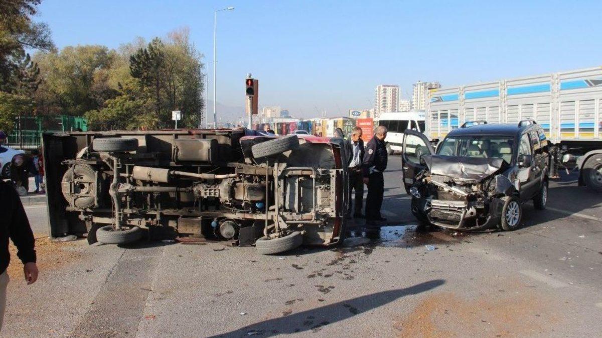 Kayseri’de meydana gelen ve 3 aracın karıştığı zincirleme trafik kazasında, kamyonet yan yattı.Edinilen bilgiye göre Kocasinan ilçesine bağlı Kocasinan Bulvarı ile Fuzuli Caddesi kavşağında meydana gelen trafik kazasında 38 HJ 895, 38 VZ 276 kamyonet ile 38 AB 025 plakalı özel halk otobüsü kaza yaptı.Meydana gelen kazada 38 VZ 276 plakalı kamyonet çarpışmanın etkisiyle yan yattı.Kazada sürücüler ve yolcular yara almadan kurtulurken, polis ekipleri kaza ile ilgili olarak inceleme başlattı.