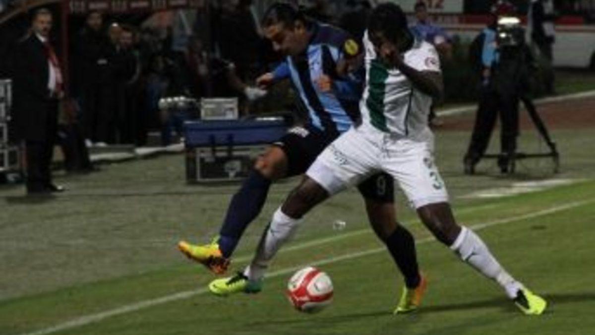 Bursaspor, Ziraat Türkiye Kupası 4. Turu'nda karşılaştığı PTT 1. Lig ekiplerinden Adana Demirspor'u 2-1 mağlup etti.MAÇTAN DAKİKALAR (İLK YARI)8. dakikada Adana Demirsporlu Erçağın kullandığı serbest vuruşta top kaleci Frey'in yanından auta gitti.10. dakikada gelişen Bursaspor atağında, rakip defans oyuncularından seken top Ferhat'ın önünde kaldı. Ferhat, düzgün bir vuruşla topu ağlara gönderdi. 0-125. dakikada Chretien'in orta sahadan defansın arkasına attığı topla buluşan Kazım Kazım, meşin yuvarlağı kalecinin yanından ağlarla buluşturdu. 0-229. dakikada Kouemaha'nın Bursaspor ceza sahasına gönderdiği top, defanstan sekerek kalenin yanından auta gitti.44. dakikada ceza sahası içerisinde topla buluşan Adana Demirsporlu Kouemaha, rakip defans oyuncularını geçerek yaptığı vuruşunda topu ağlara gönderdi. 1-263. dakikada ev sahibi takımın atağında, Erçağ'ın sağ çaprazdan ortaladığı topu Bursasporlu defans oyuncuları uzaklaştırdı. Pozisyonu takip eden Mesut'un gelişine vurduşunda, top direkten geri geldi.73. dakikada Bursaspor'un geliştirdiği kontra atakta topla buluşan Kazım Kazım, kaleciyle karşı karşıya kaldığı pozisyonda meşin yuvarlağı yandan auta gönderdi.89. dakikada Erçağ'ın kullandığı serbest vuruşta top, Bursasporlu oyuncular tarafından uzaklaştırıldı.STAT: 5 OCAKHAKEMLER: Koray Gençerler xxx, Volkan Akçit xx, Ahmet Ayaz xxADANA DEMİRSPOR: Şener x, Ahmet Çörekçi x, Nurettin x (Kerem Can dk. 46 x), Erdi x, Gökay x (Yusuf dk. 46 x), Erçağ x, Mesut xx (Mehmet Eren dk. 80 ?), Rajnoch x, Efe x, Ferhat x, Kouemaha xxYEDEKLER: Emre, Raşit, Atilla Aybars, YiğitcanTEKNİK DİREKTÖR: Mustafa UğurBURSASPOR: Frey x, Civelli xx, Taye xx, Belluschi xx, Şamil x, Kazım Kazım xx, Pinto x (Şener dk. 64 x), Chretien x, Musa x (Tuncay dk. 90+3 ?), İbrahim x, Ferhat Kiraz xx (Murat dk. 74 ?)YEDEKLER: Harun, Hakan, Mustafa Batuhan, EnesTEKNİK DİREKTÖR: Christoph DaumGOLLER: Kouemaha (dk. 44) (Adana Demirspor), Ferhat (dk. 10), Kazım Kazım (dk. 25) (Bursaspor)SARI KARTLAR: Kouemaha (Adana Demirspor), Şamil (Bursaspor)