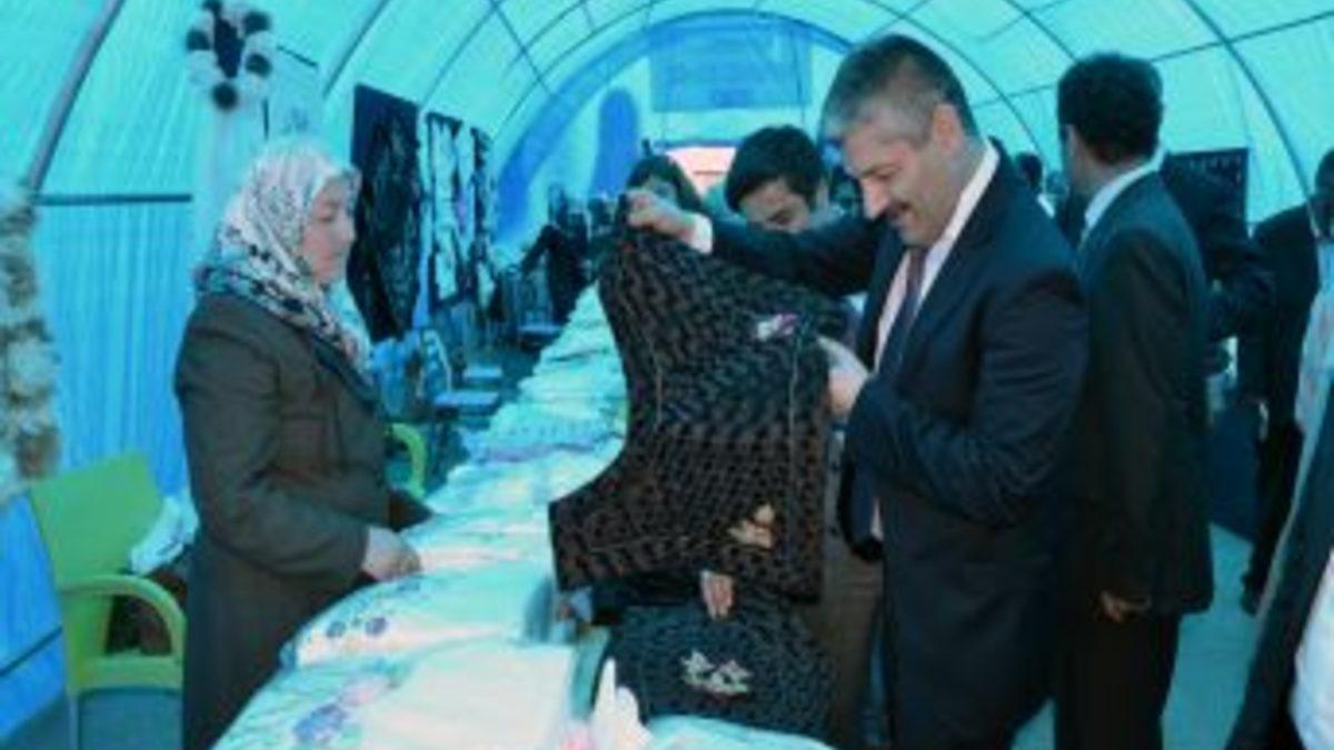 Kermeste pike takımları, bebek pike takımları, damat bohçaları, yağlı boya tablolar, salon takımları, tel kırma takımlar, iğne oyalı takımlar, mutfak takımları ve dertsiz örtüler başta olmak üzere 20 çeşit el emeği eserler ile