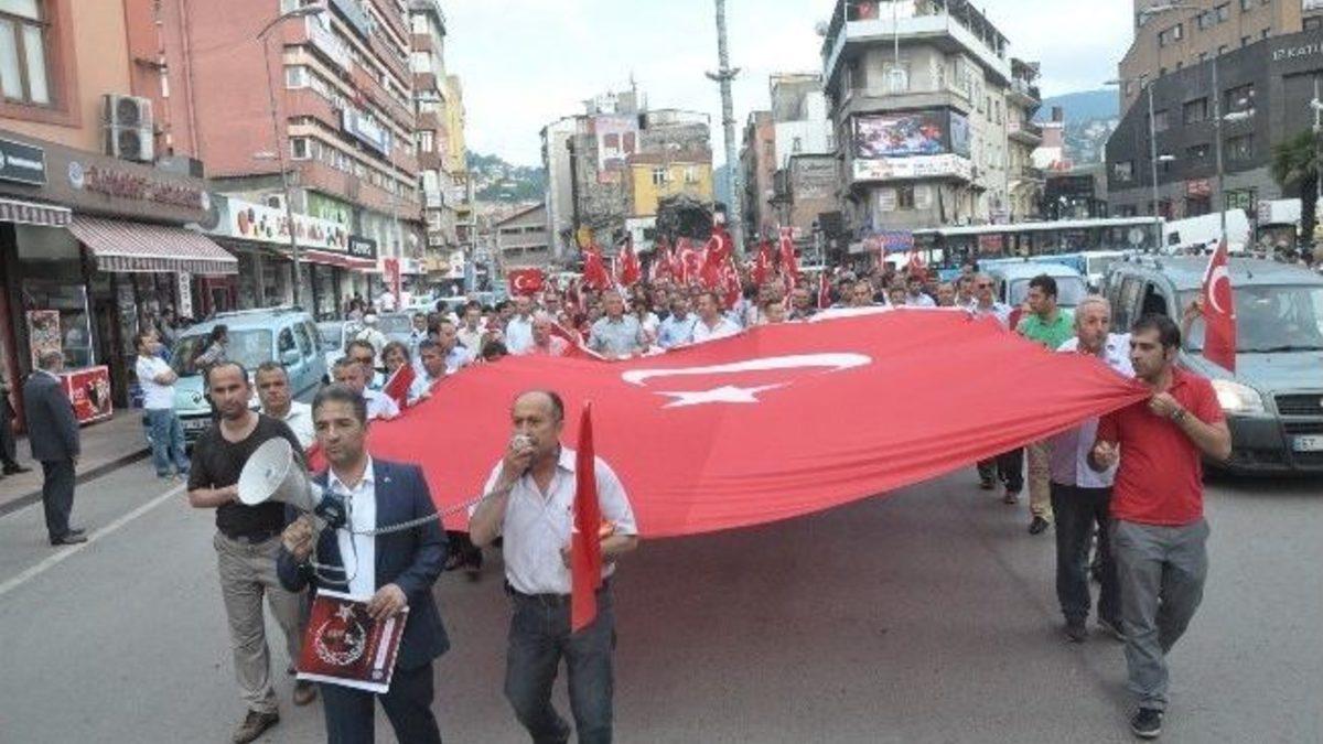 Kamu-Sen Zonguldak şube üyeleri Diyarbakır Lice’de indirilen Türk Bayrağı’na tepki gösterdi.Madenci anıtı önünde bir basın açıklaması yapan Kamu-Sen Zonguldak Şube Başkanı Kadir Bacıoğlu, "Binlerce evladımız toprağa düştüler ve bu kutsal bayrağı şimdiki nesillere, bugünkü iktidara selametle teslim ettiler. Bayrağımıza yapılan bu saldırıyı lanetliyoruz" dediBüyük Türk Bayrağı açarak yürüyüş yapan grup İstiklal Marşı'nı okudu. Yürüyüş esnasında slogan atan gruba çevredeki vatandaşlar alkışlı destek verdi. Valilik önünde bulunan Şehitlik Anıtı önüne gelen grup burada şehit olan askerlere dua okuyarak eylemlerini sonlandırdı.