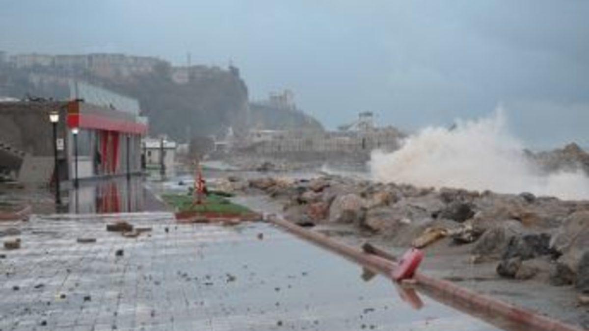 Zonguldak'ın Kozlu beldesinde fırtına nedeniyle dalgakıranları aşan dalgalar, sahile yakın çocuk parkı ve kafeterya kadar ulaştı.Dev dalgalar kafede bulunan masa sandalye ve çok sayıda eşyayı ıslatırken, çocuk parkında kaydırak ve oyuncaklara zarar verdi. Olay yerine gelen polis ekipleri, vatandaşları tehlikeye karşı uyardı ve dev dalgaların kaldığı yere güvenlik şeridi çekti.Kuvvetli fırtına ile kar ve tipinin yarın da etkili olacağını belirten Meteoroloji yetkilileri, denizcileri uyarırken, liman giriş ve çıkışları durduruldu. Öte yandan yetkililer, olumsuz hava koşullarına karşı vatandaşların tedbirli olmaları gerektiğini bildirdi