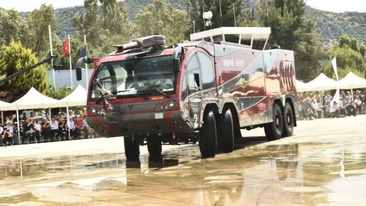 Türkiye’de üretilerek tüm dünyaya satılan yeni nesil itfaiye araçları, Selçuk Efes Havaalanında gösteri yaptı. 20 ülkeden 300’ün üzerinde itfaiyecinin katıldığı "Zürafa’nın koşusu 2016" organizasyonunda bir ilk yaşandı. Organizasyonda dünyada ilk kez bir itfaiye aracıyla drift gösterisi yapıldı. Tüm dünyadan itfaiyecileri Selçuk Efes Havalanında bir araya getiren geleneksel Zürafa’nın Koşusu organizasyonunda, 370 seçkin konuk yeni nesil yerli üretim itfaiye araçları ilgiyle izlendi.İTFAİYE ARACIYLA DRİFT GÖSTERİSİİleri sürüş teknikleri uzmanı ve Head Akademi genel direktörü Cankat Hurmoğlu, dünyada ilk kez bir itfaiye aracıyla drift gösterisi sergiledi. 6 tonun üzerinde ağırlığa sahip olan Volkan Şehir tipi itfaiye aracıyla gerçekleştirilen gösteri itfaiyecilerden alkış aldı.Zürafa’nın koşusunda piste çıkan ve tamamen Türkiye’de üretilerek dünya havalimanlarında görev yapan Lion Uçak Söndürme aracı, 55 metre yüksekliğe ulaşabilen merdivenli araç ve endüstriyel yangınlara müdahale aracı yabancı itfaiyecilerin ilgisini çekti.YENİ NESLİ SÖNDÜRME TEKNOLOJİLERİ SERGİLENDİVolkan itfaiye Ar-Ge birimi tarafından geliştirilerek yangınlara çok daha az miktarda su ve köpük kullanarak müdahale edebilmeyi sağlayan yeni nesil Cafs sistemi de demo gösteriler eşliğinde tanıtıldı.Alevleri saniyeler içerisinde etkisiz hale getirebilen sistem köpük ve suyu hava basıncıyla karıştırarak çok daha etkin müdahale imkanı sunarken daha az kimyevi madde kullanılmasını sağlayarak çevreyi de koruyor.